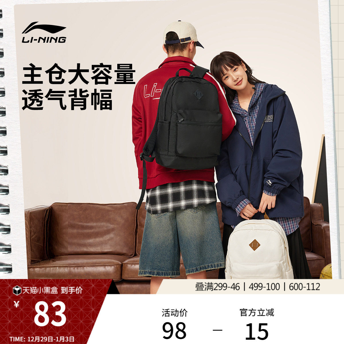 李宁书包男女2026新款官方正品大学生高级感通勤背包休闲双肩包