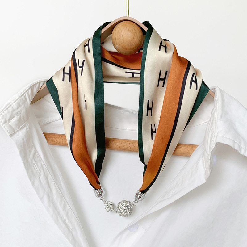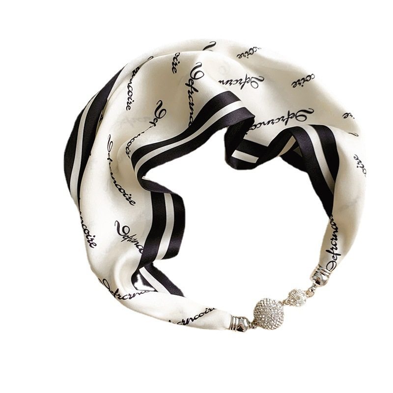 磁吸扣小丝巾护颈时尚百搭珍珠围巾女领巾2025夏季新款项链波点