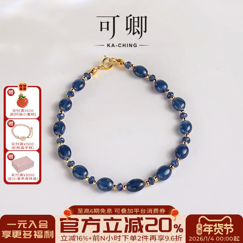 可卿珠宝 蓝蕊 素面蓝宝石手链天正品然宝石手链首饰18k礼品女