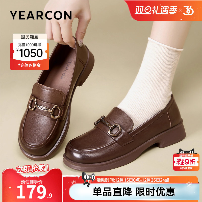 意尔康女鞋2025新款真皮女士乐福鞋英伦风小皮鞋通勤单鞋配裙子