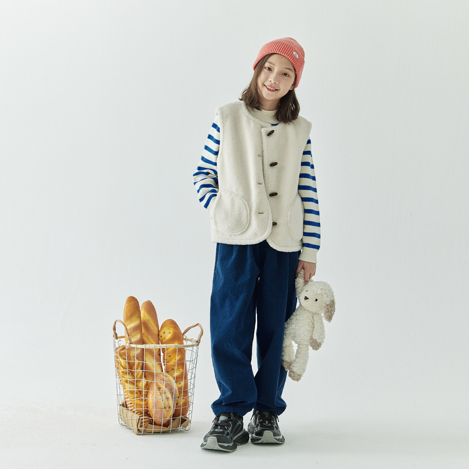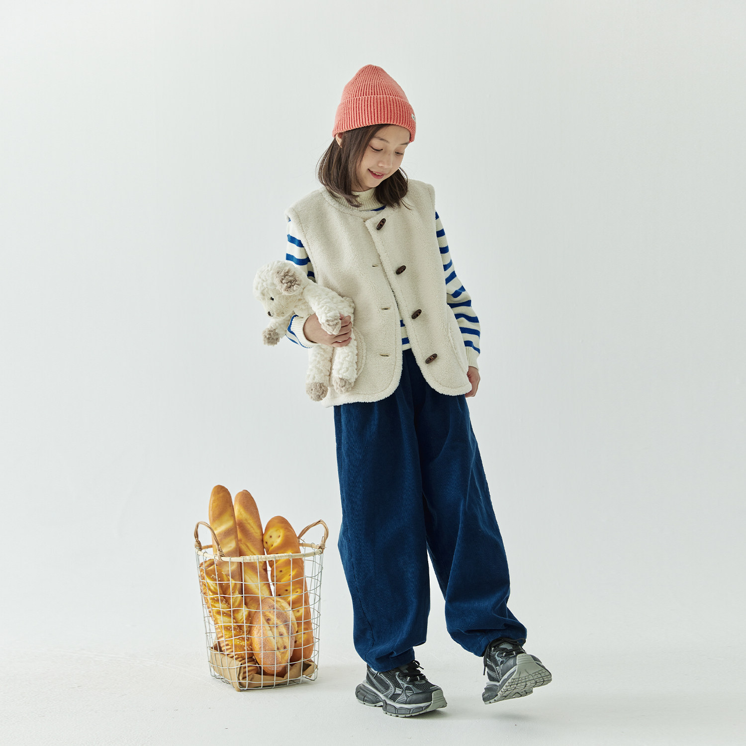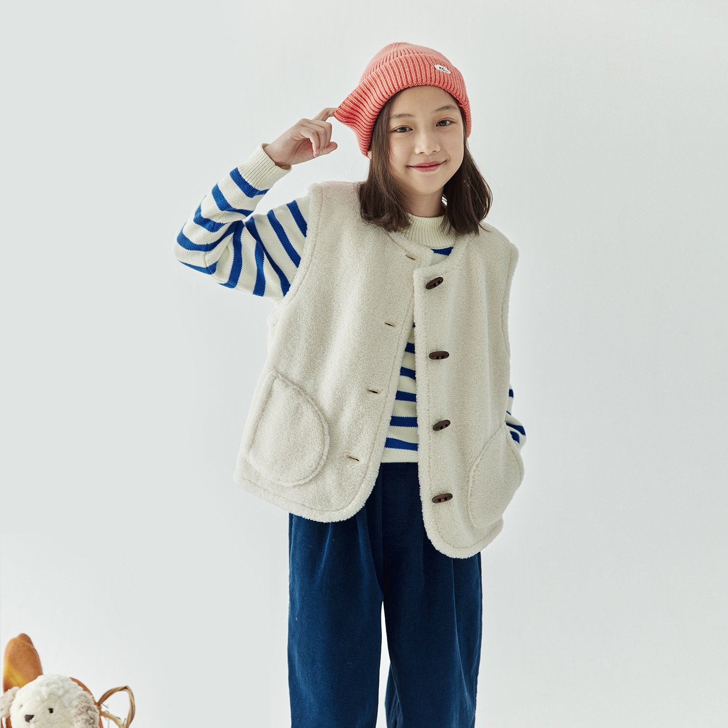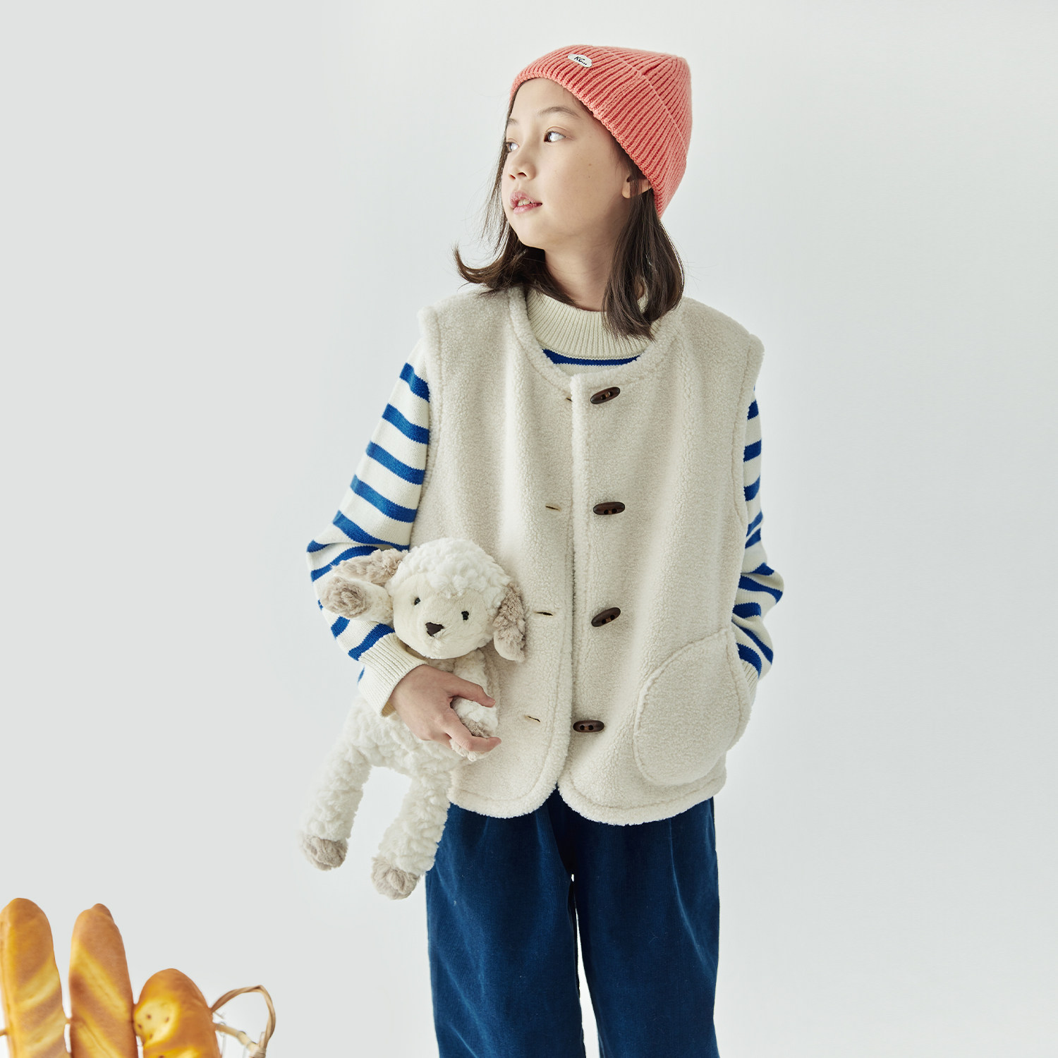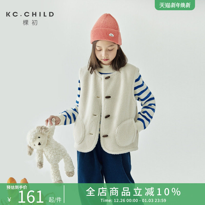棵初2025年秋冬新款女童软糯颗粒绒保暖马甲复古牛角扣背心可外穿