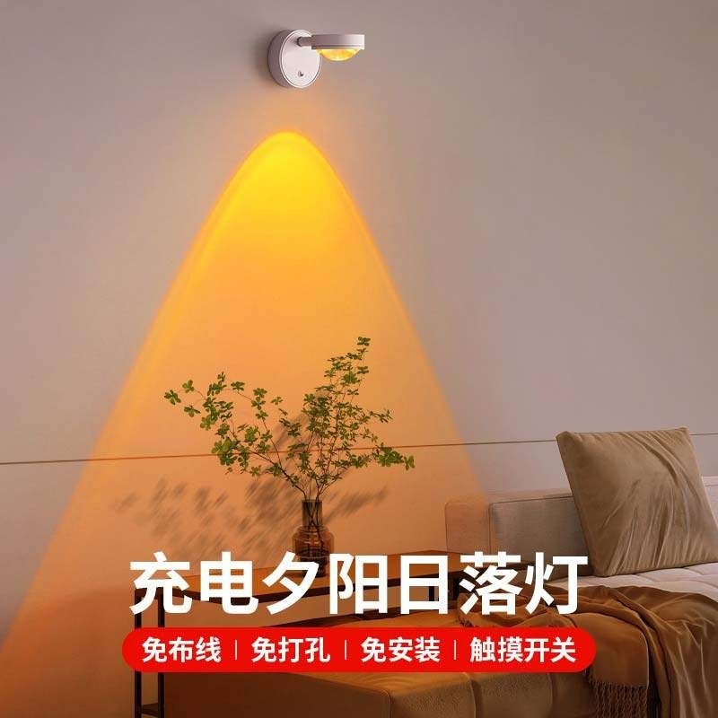 充电壁灯免布线日落夕阳灯氛围无线射灯卧室客厅背景墙装饰照画灯