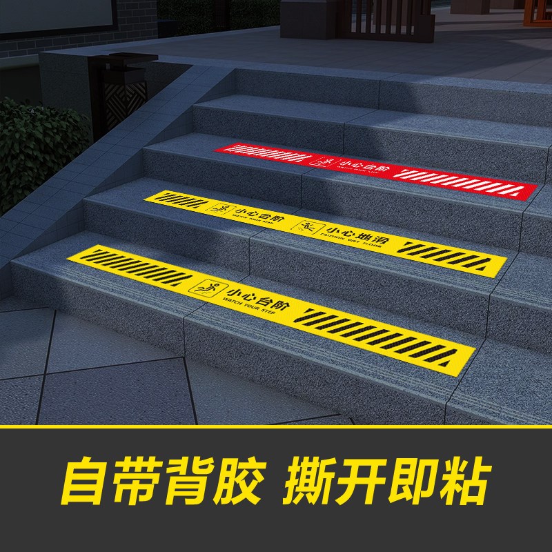 小心台阶小心地滑地贴夜光提示牌标识牌防水贴纸注意安全上下楼梯提示贴当心碰头消防荧光牌紧急出口指示定制