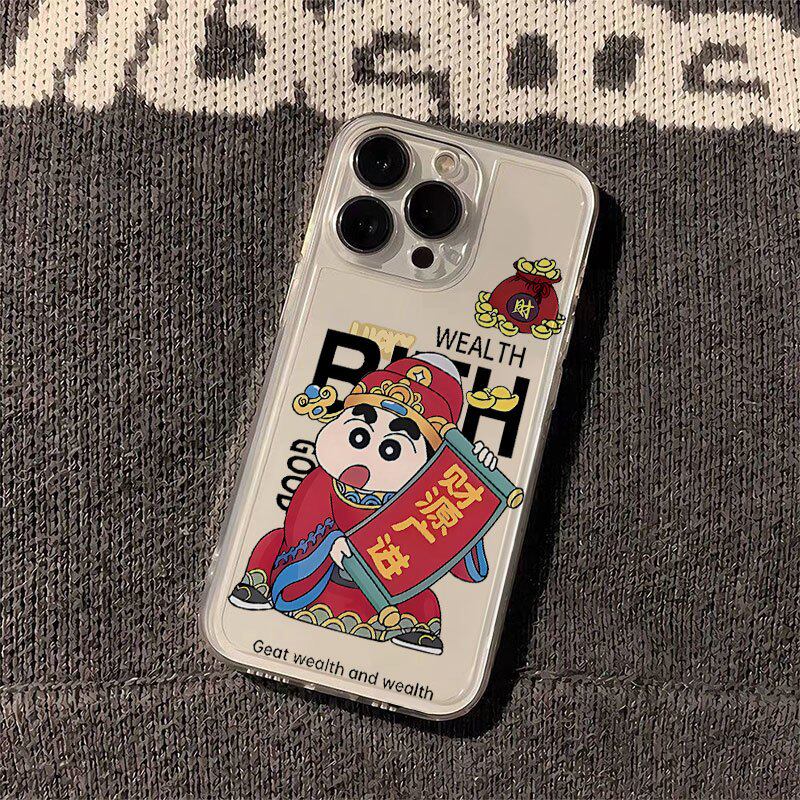 新年发财小新适用苹果iPhone17/16e手机壳新款15promax卡通14半透明13/12mini硅胶男女xs全包xs防摔7/8plus软