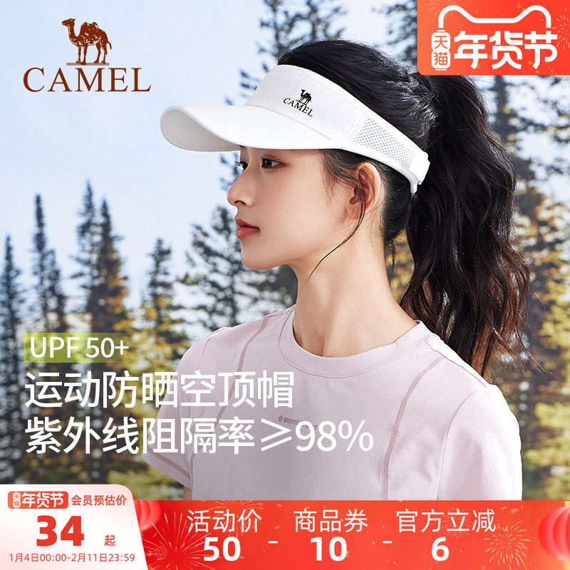骆驼空顶遮阳帽女防晒防紫外线夏运动鸭舌太阳帽速干跑步网球帽女