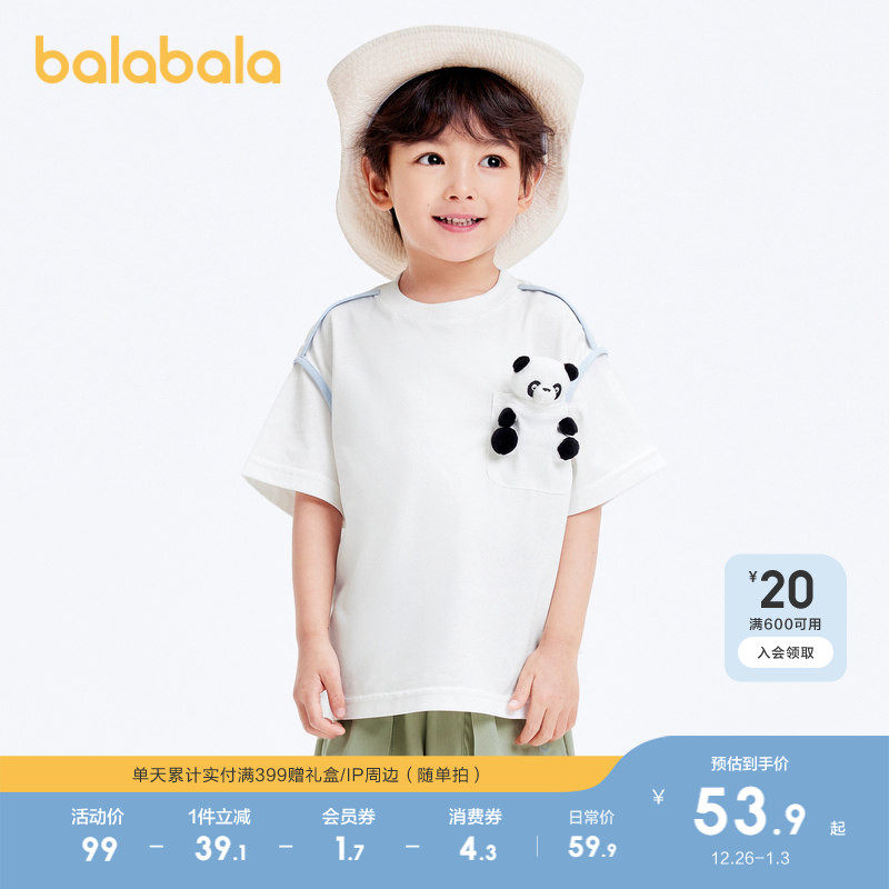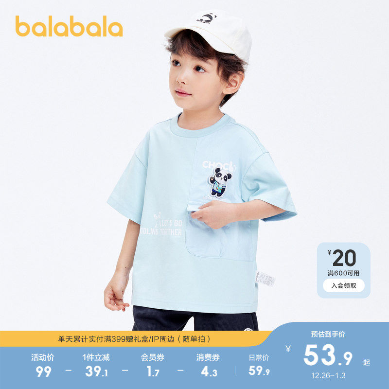 巴拉巴拉童装儿童短袖男童2025新款春夏装凉感时尚t恤休闲上衣潮