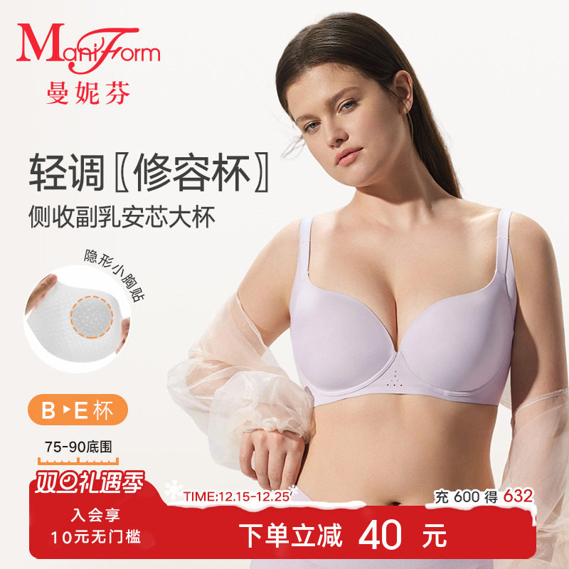 曼妮芬内衣女轻薄款收副乳轻调修容杯大胸显圆文胸无痕软钢圈胸罩