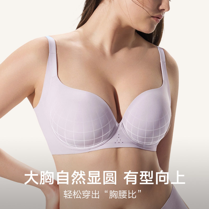润微提拉女王内衣女大胸显小无痕大码调整防下垂收副乳粉底液文胸