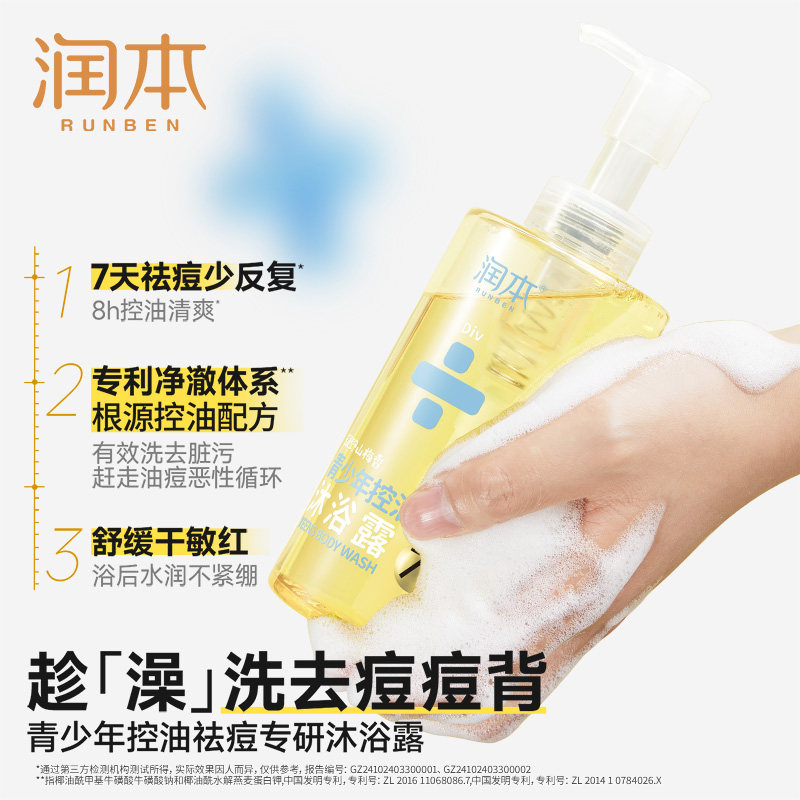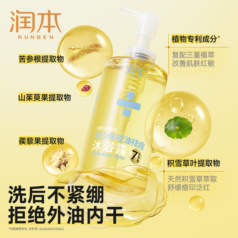 润本青少年控油祛痘沐浴露清洁后背痘男生女生洗护沐浴乳官方正品