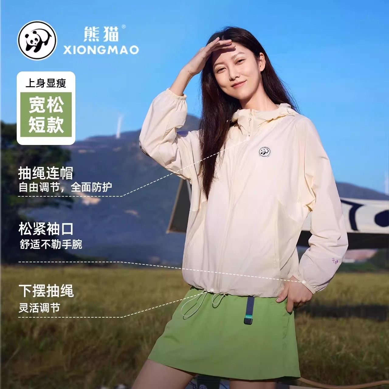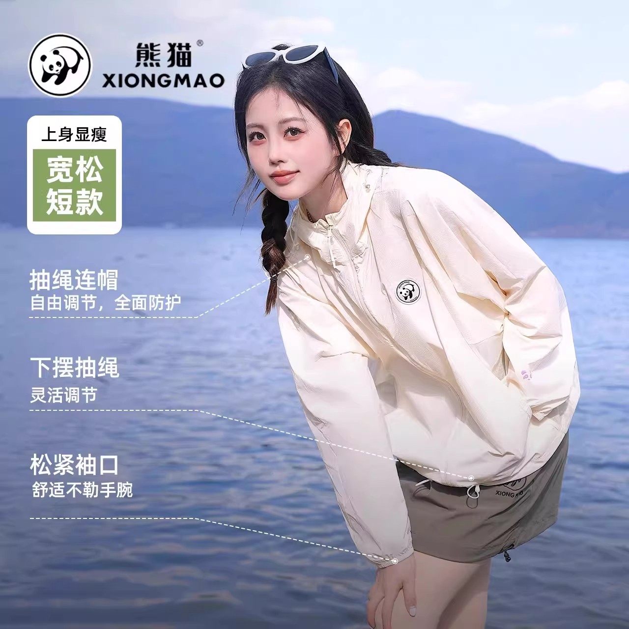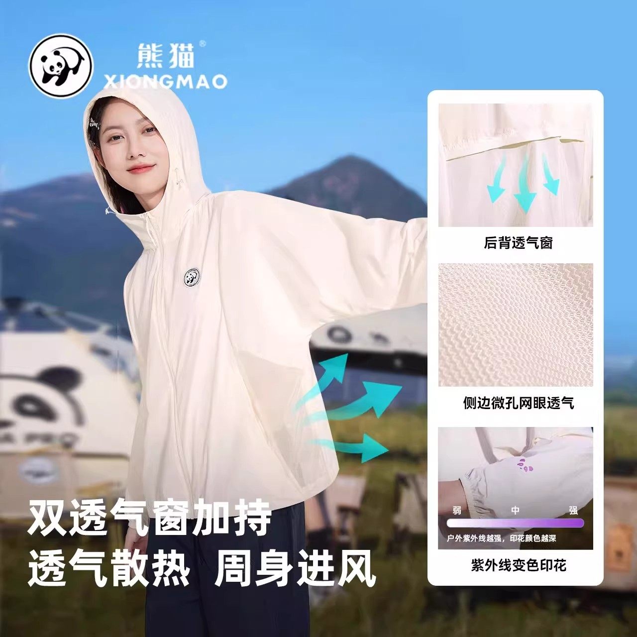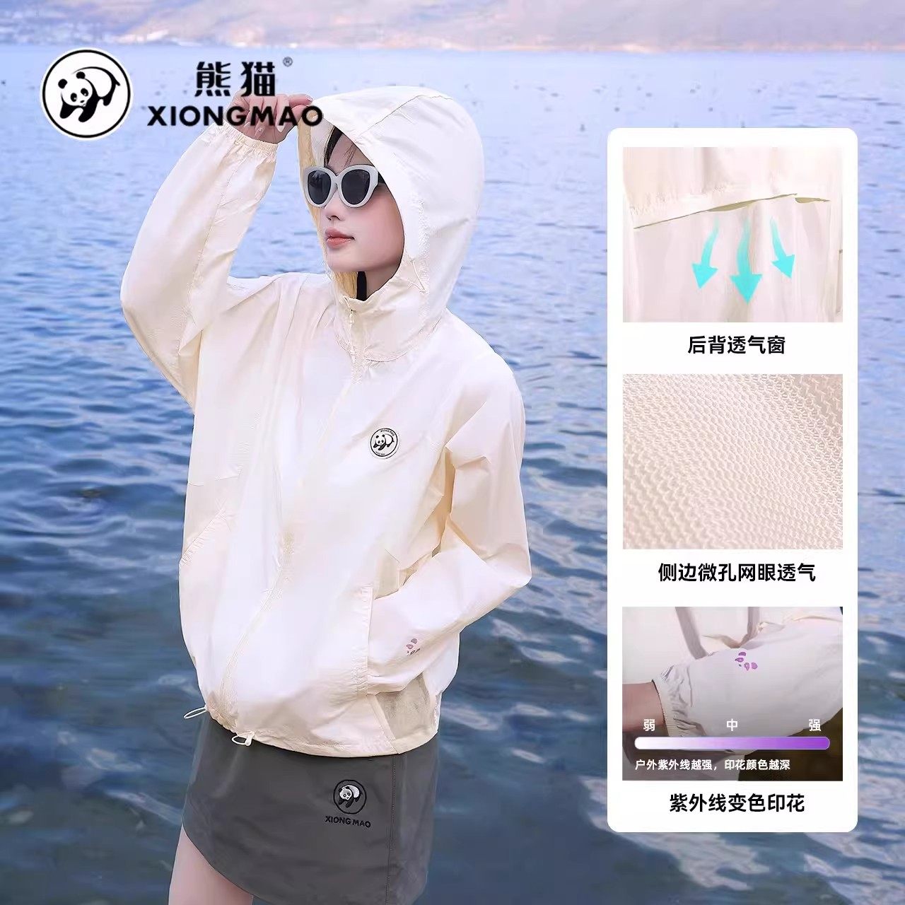 熊猫冰棒防晒衣女2026夏季户外宽松凉感透气骑行防晒服连帽外套男