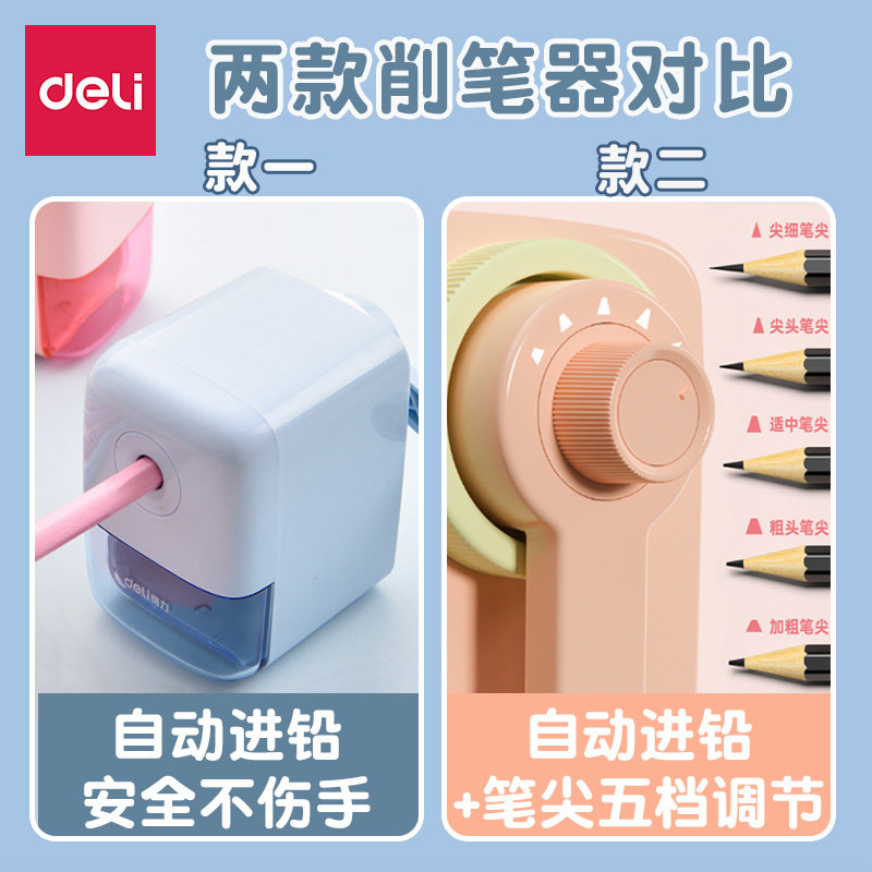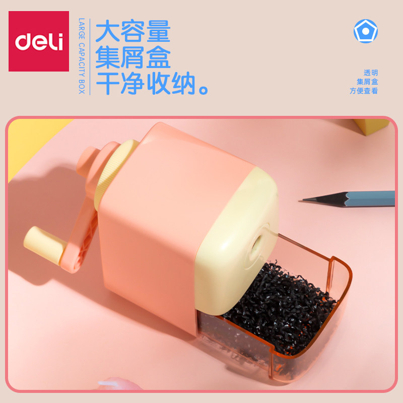 得力手摇削笔器小学生自动进铅卷笔刀可调粗细儿童手动铅笔削笔机