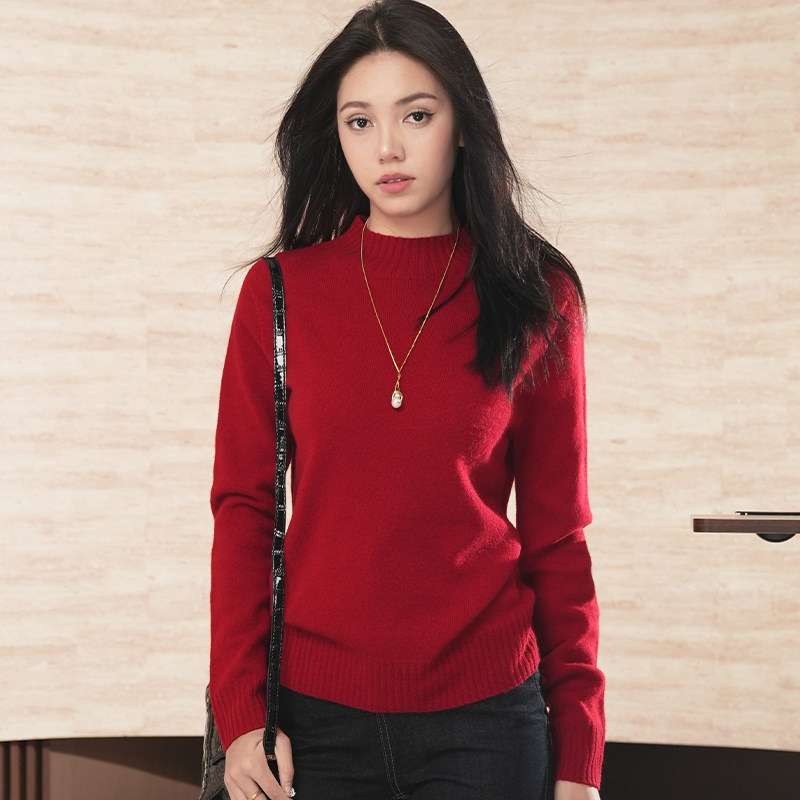 本命新年红!扬子纱羊毛针织内搭打底衫女冬修身高领毛衣2025新款
