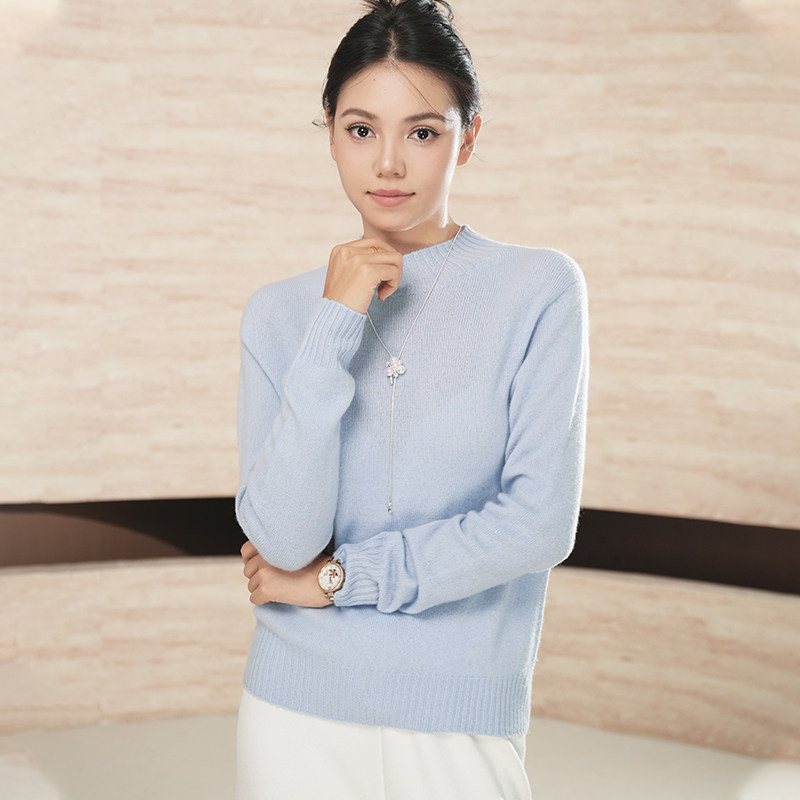【反季清仓】秋季羊绒衫女堆堆领短款套头毛衣高领修身打底针织衫