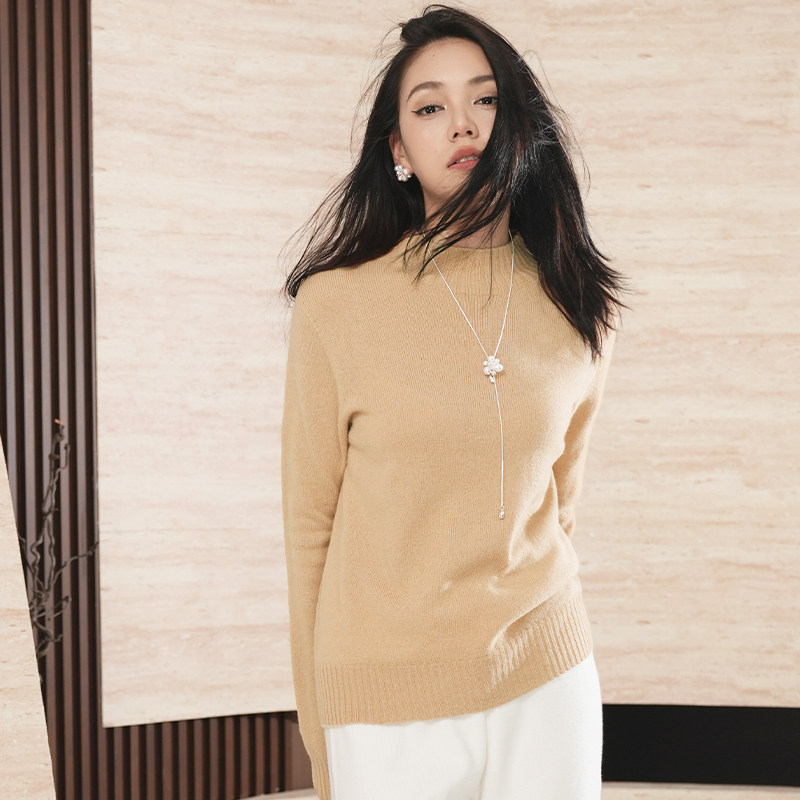 2025秋冬新款羊绒衫女低圆领宽松显瘦毛衣百搭100羊毛针织打底衫