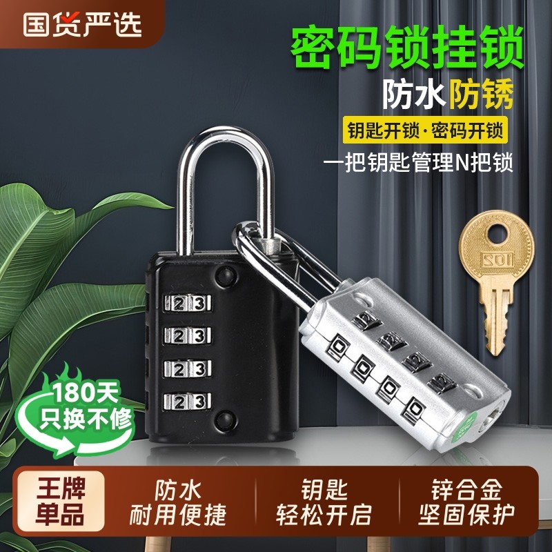密码锁挂锁带钥匙两用家用学生宿舍小型柜子锁行李箱储物柜防锈