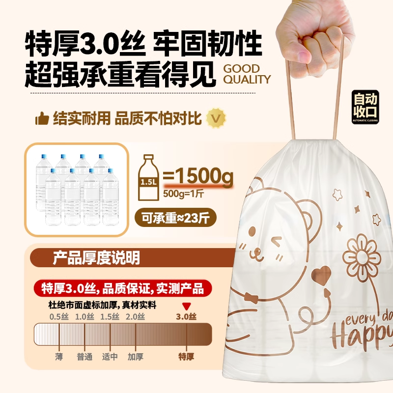 下拉详情领优惠包邮e洁抽绳袋45*50cm垃圾袋厨房手提式家用多规格
