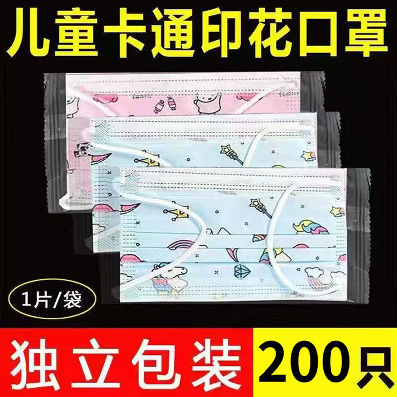 儿童口罩独立包装一次性男女童小孩学生专用可爱卡通印花图案防护