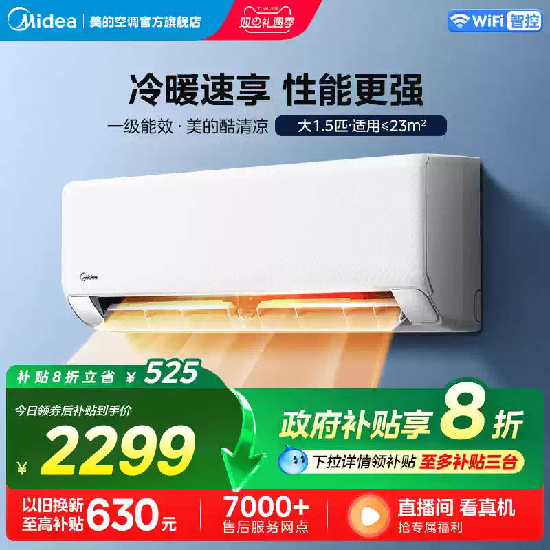美的官方空调一级省电节能大1.5匹卧室变频冷暖挂机酷清凉
