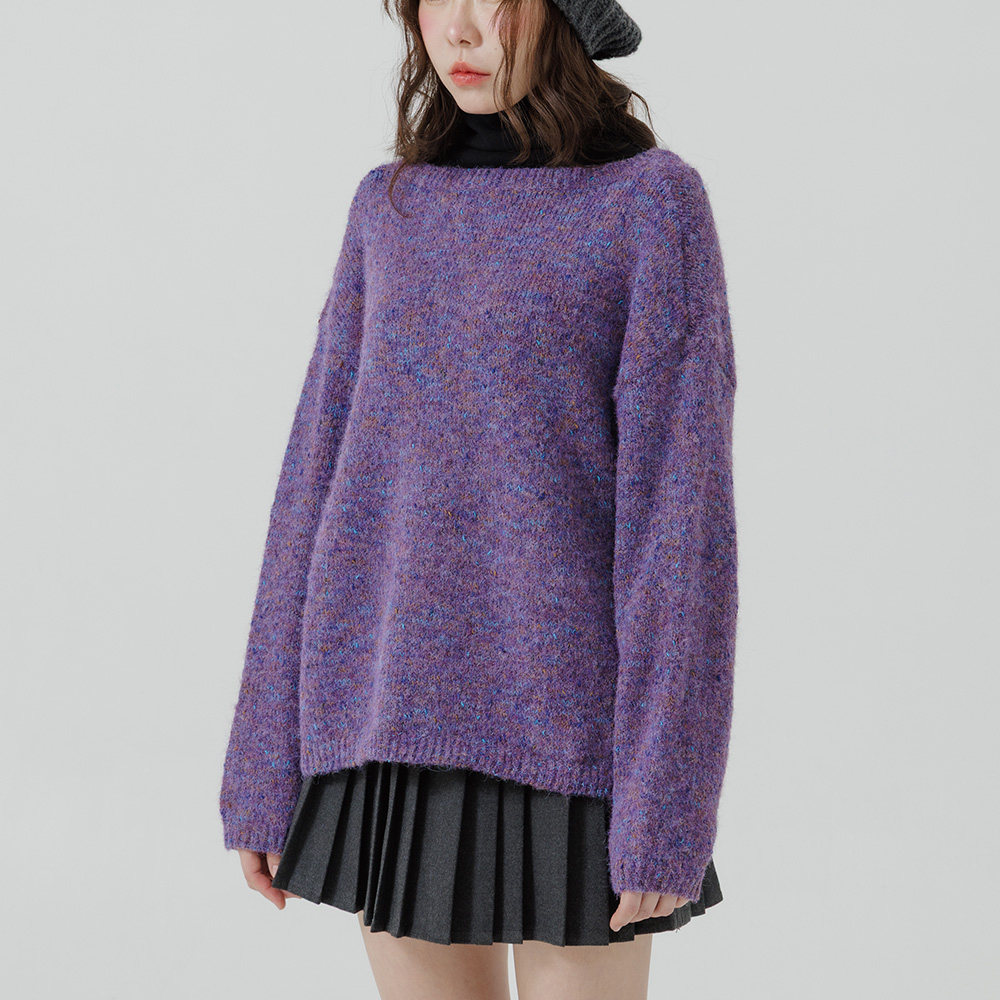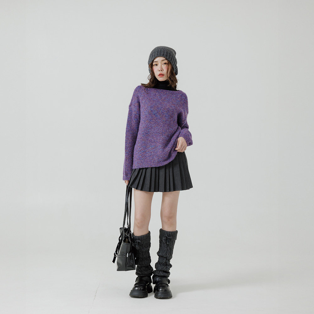 QUEENSHOP 2025秋冬新品女装质感花纱圆领宽版针织毛衣01071230