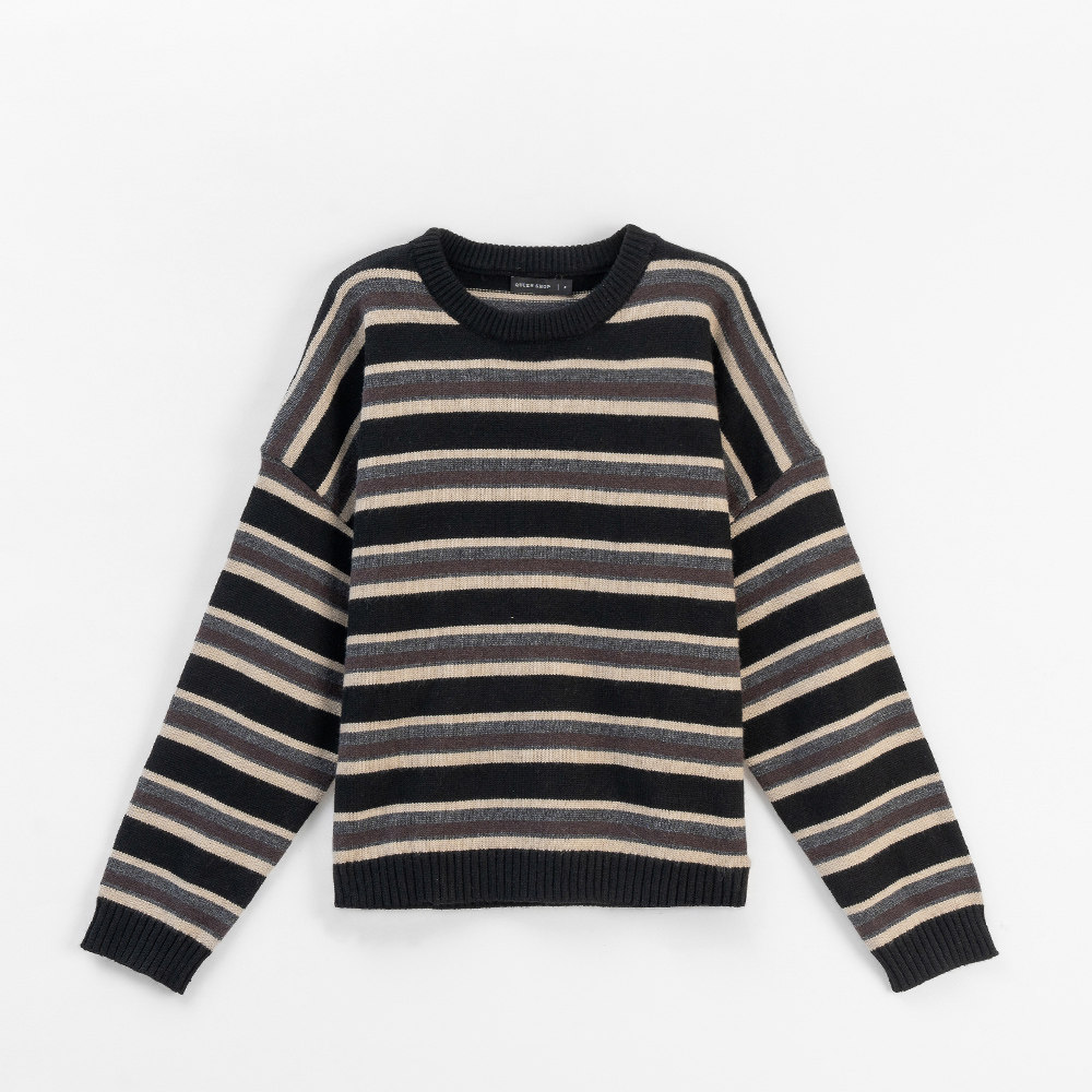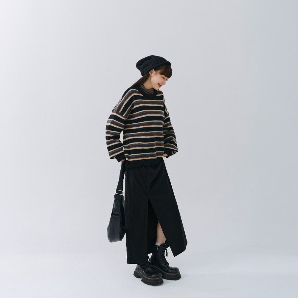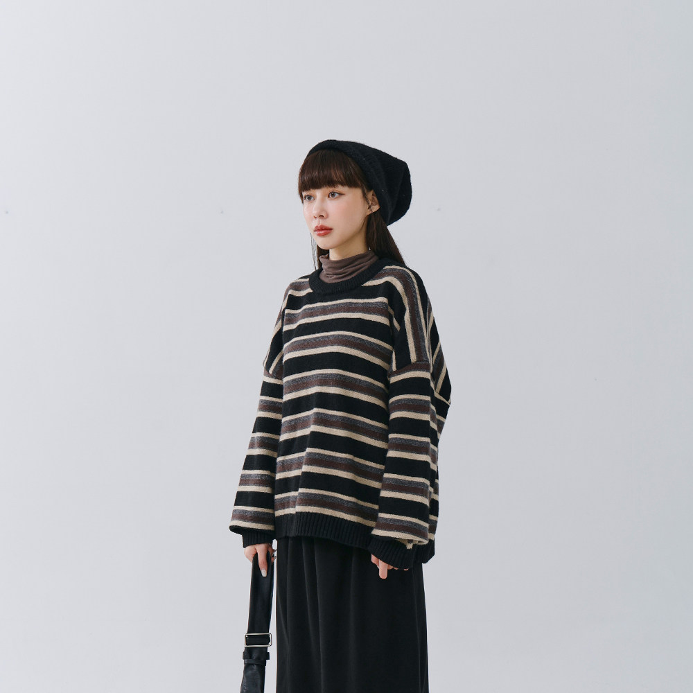 QUEENSHOP 2025秋冬新品女装条纹造型宽版针织长袖毛衣01071232
