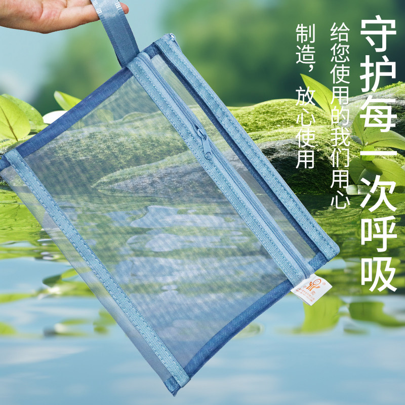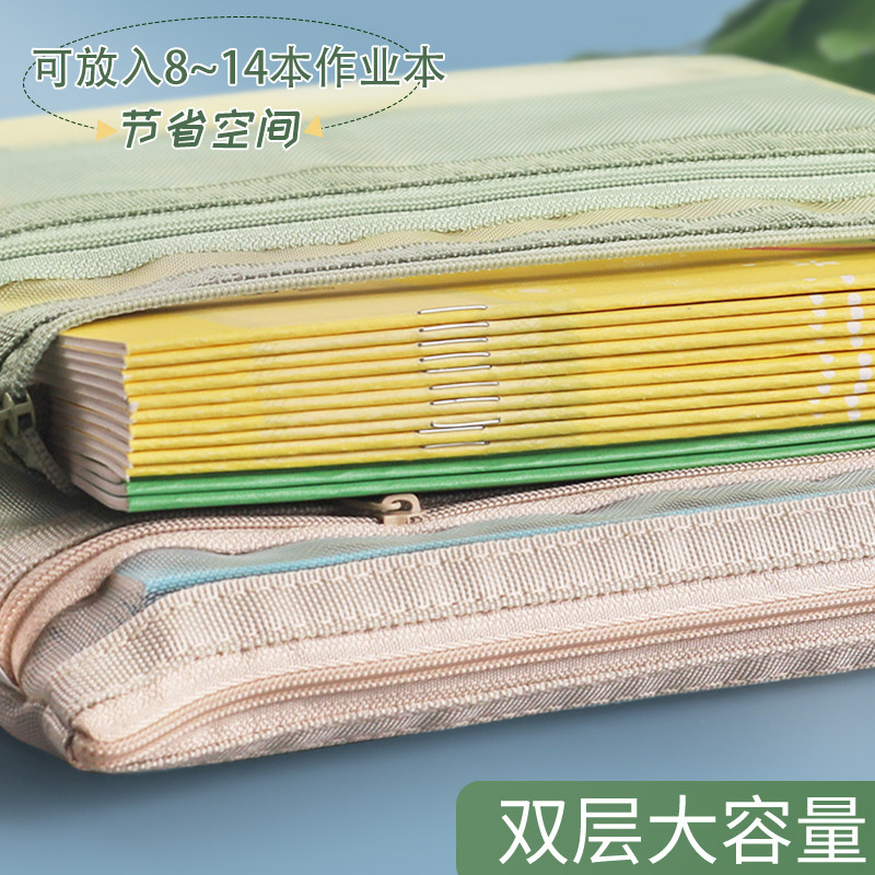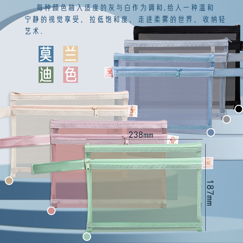 A5莫兰迪色系透明双层网纱文件袋尼龙收纳袋大容量票据袋资料作业袋子25K装笔拉链袋32k书本手提式专用收纳包
