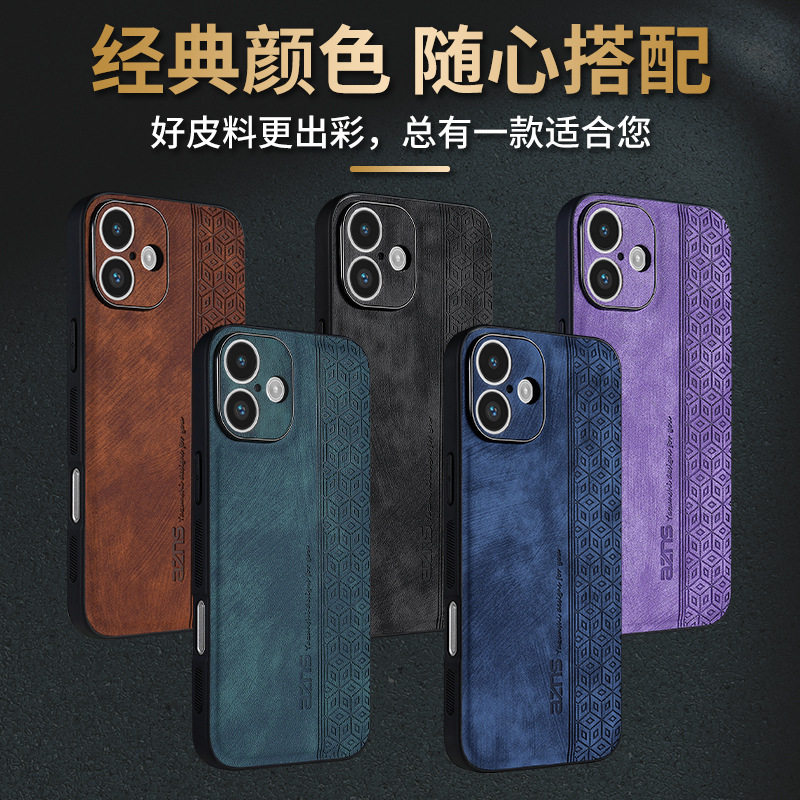 苹果17Pro手机壳高端奢华素皮质新款防摔iPhone16防滑防汗12创意8p保护壳11Promax硅胶情侣15个性高级Xr高贵
