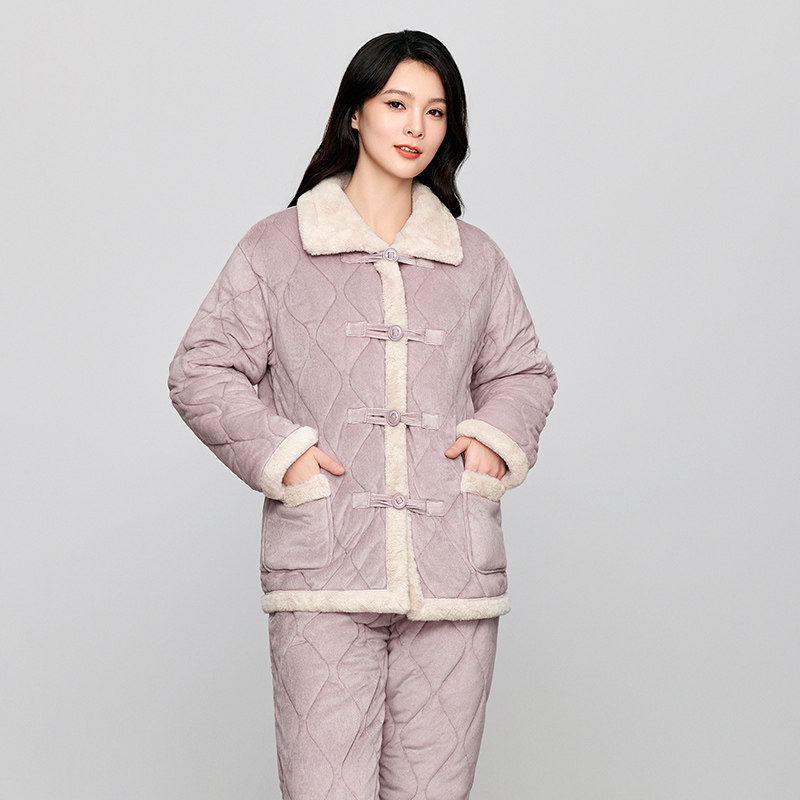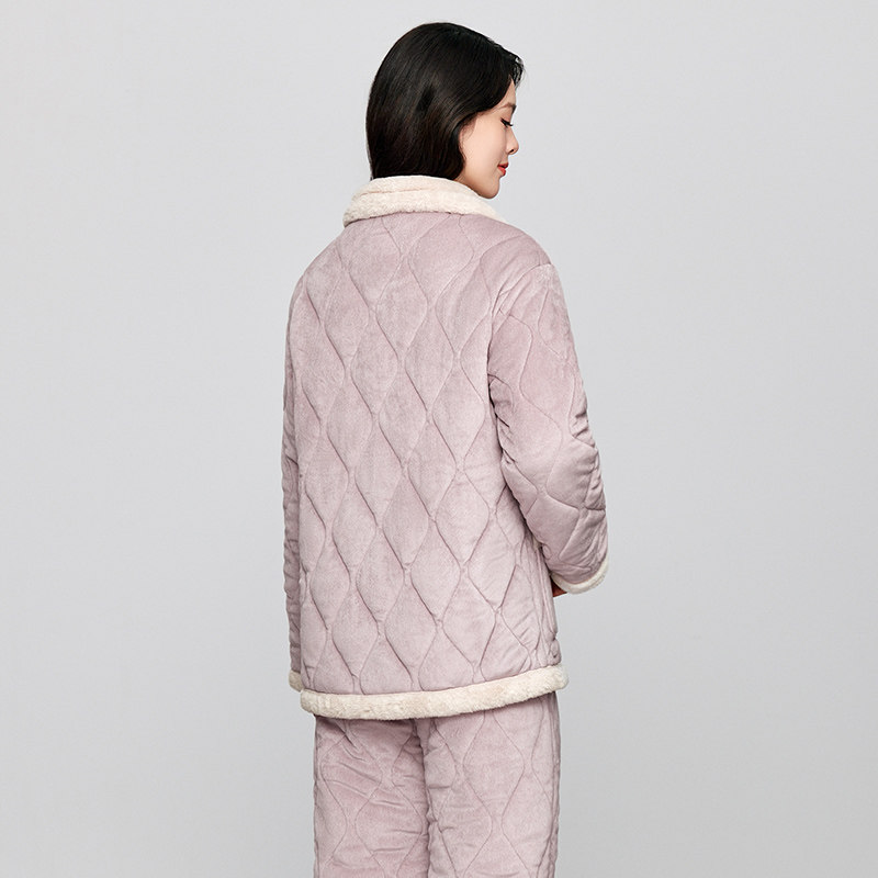 安莉芳专柜新品秋冬款大翻领长袖加厚睡衣女士家居服套装EL00781