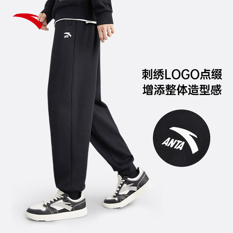 安踏奶芙裤丨运动长裤女裤冬季加绒黑色针织裤休闲跑步收口卫裤子