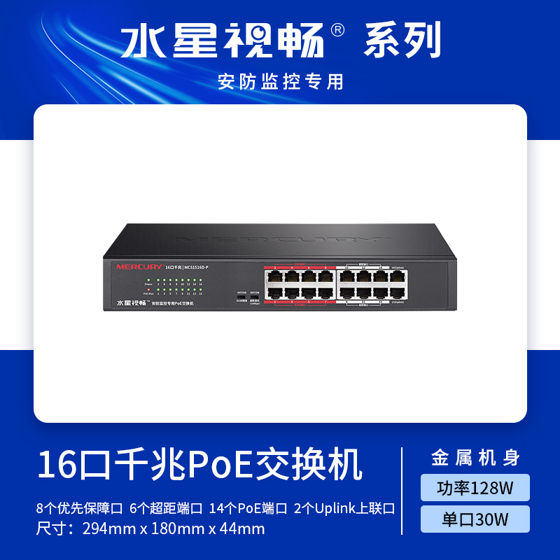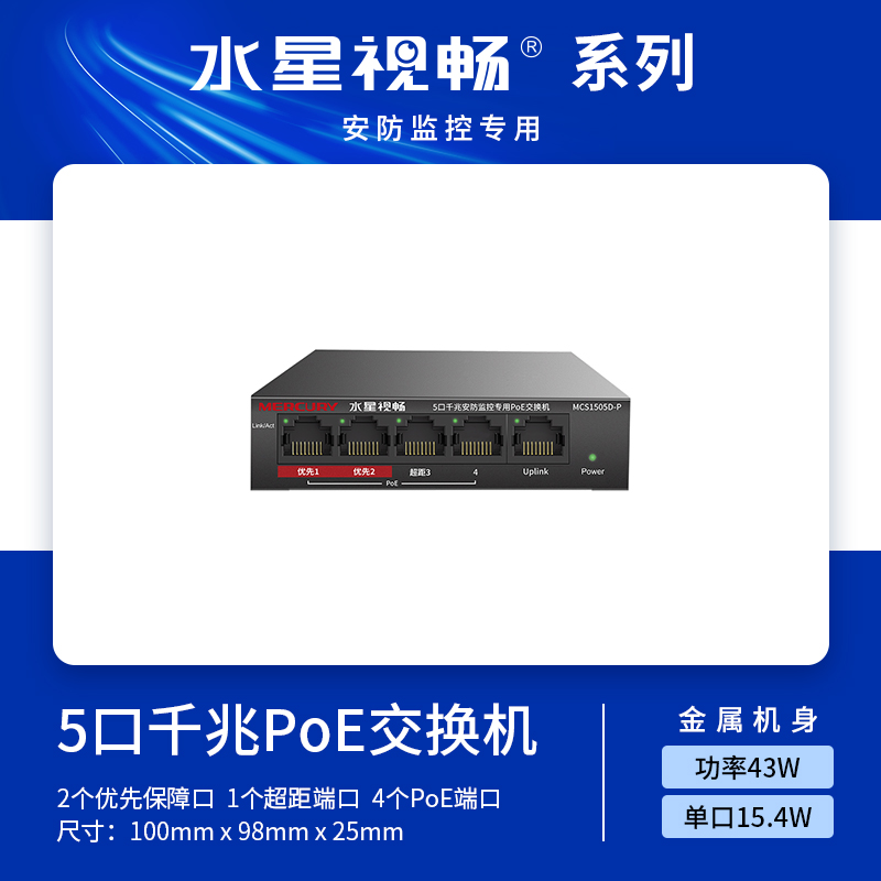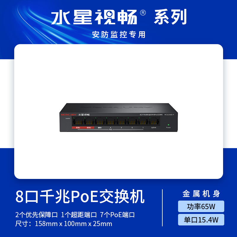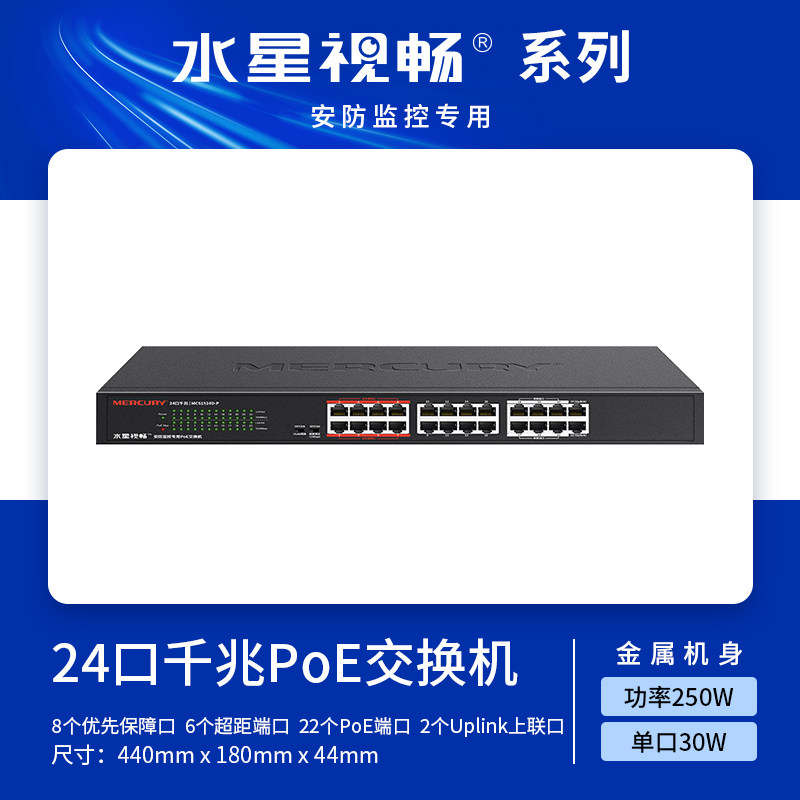 水星(MERCURY)水星5/8/16/24口百兆千兆poe安防交换机高速网络网线分线器集线器分流