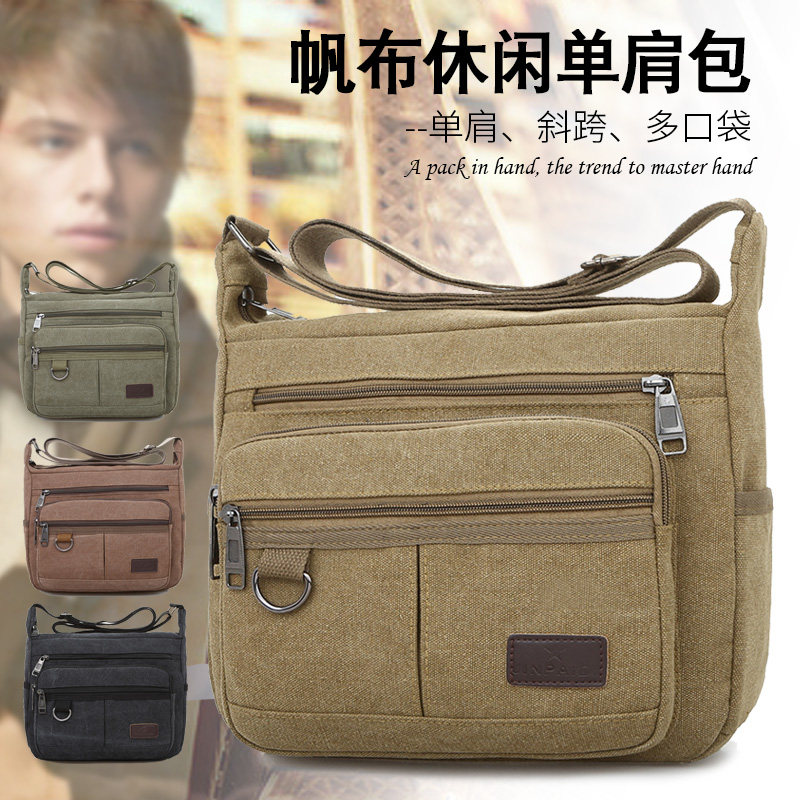 帆布男包斜挎男士包包休闲帆布包单肩包斜挎包旅行包男背包男挎包