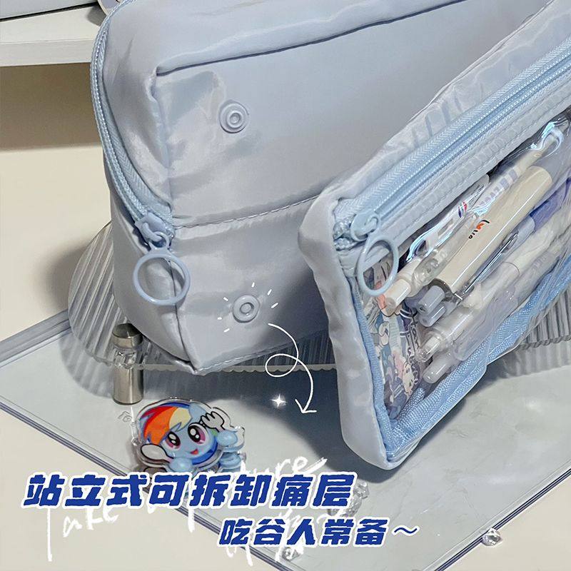 大容量痛包笔袋可拆卸透明层高颜值ins风黑色耐脏多层分类男生文具盒铅笔袋初中女生可站立式透明可放吧唧