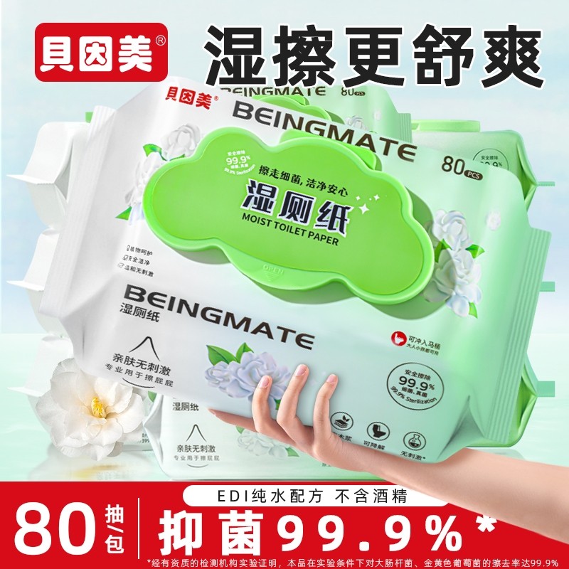 贝因美湿厕纸巾纯水温和抑菌家庭实惠装大包姨妈期可用马桶清洁