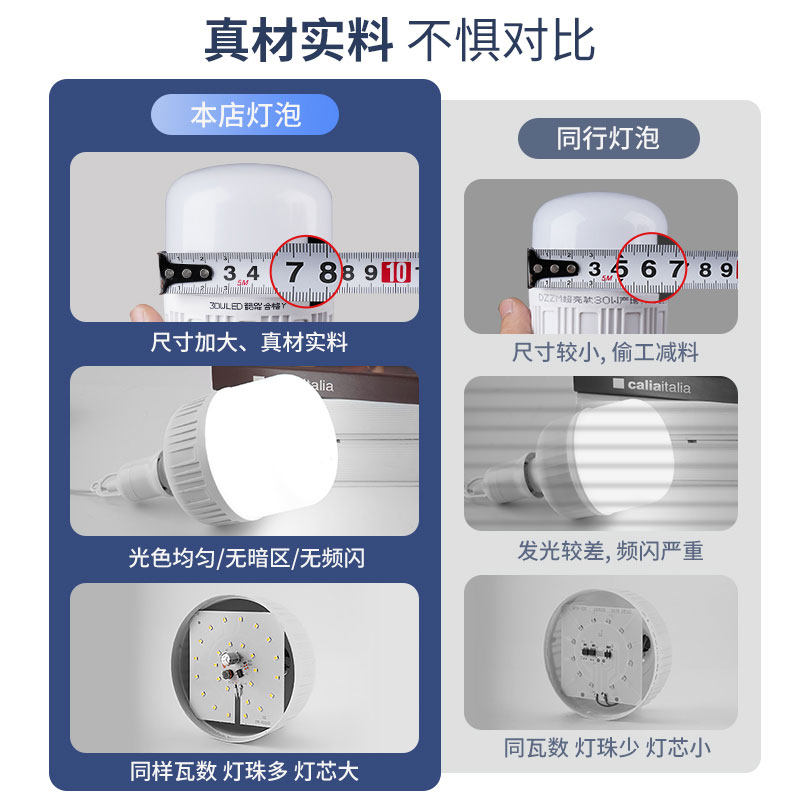 led灯泡超亮节能灯白光家用省电E27大螺口客厅室内灯照明圆柱形灯