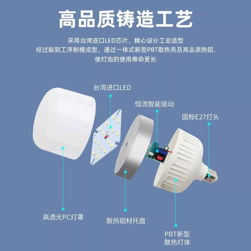 超亮led灯泡e27螺口家用白光10W20W30W40W60W80W120瓦节能灯照明