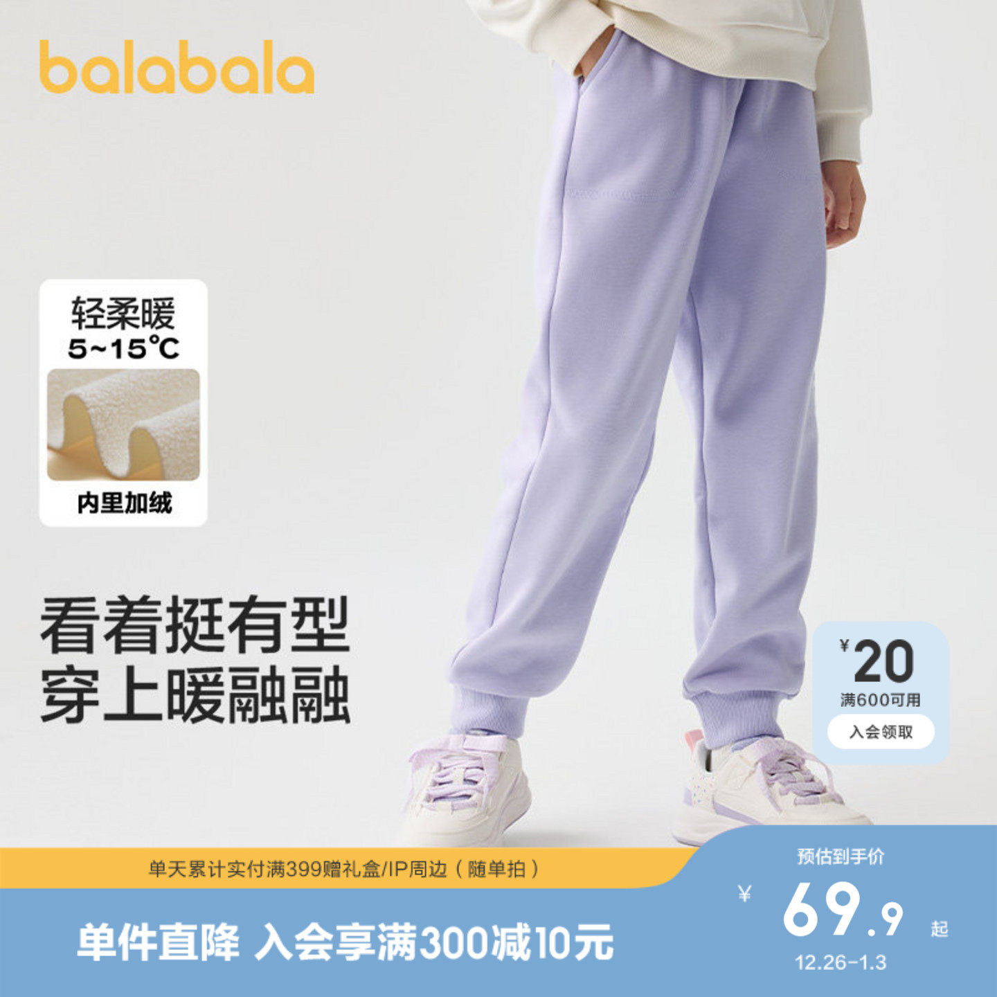 巴拉巴拉童装男童加绒长裤儿童裤子2025秋冬装女童运动休闲裤百搭