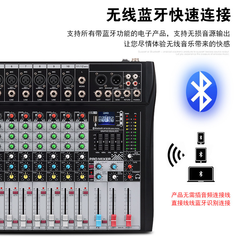 声艺8路12路16路家用舞台带USB均衡蓝牙数字混响专业调音台