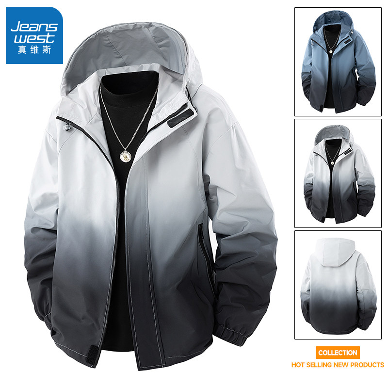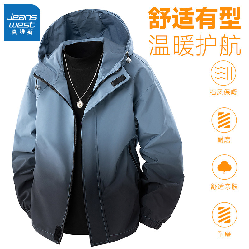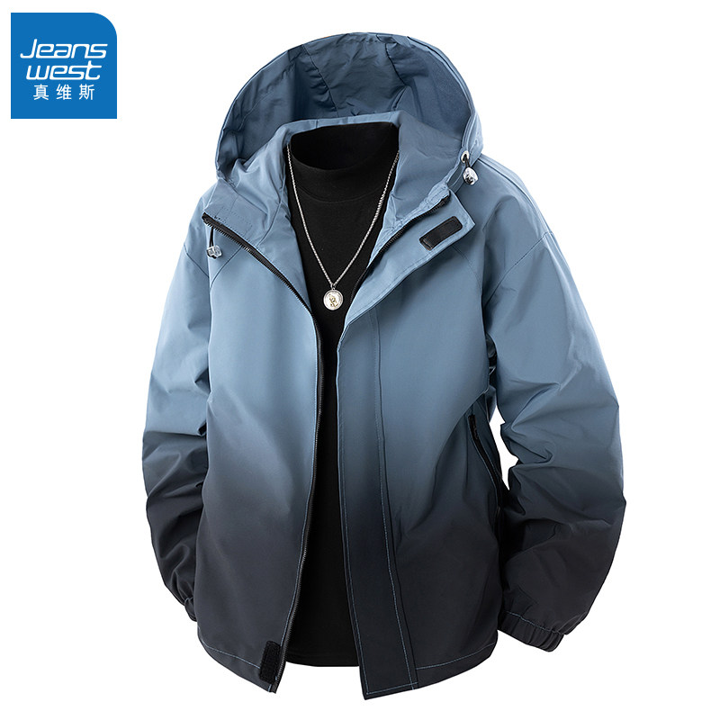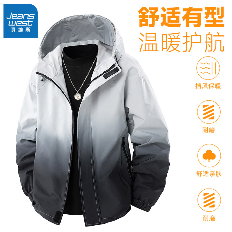 N5真维斯外套男2025秋季新款美式潮牌渐变连帽上衣服男士春秋夹克