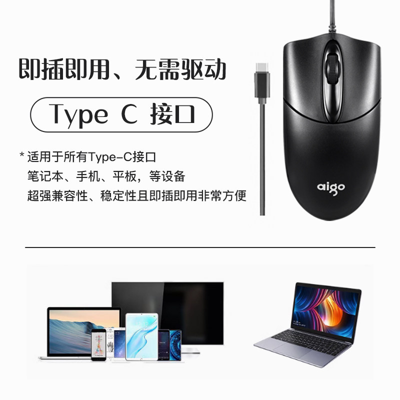 爱国者有线鼠标Type-c接口适用于苹果小米OPPO笔记本平板手机电脑