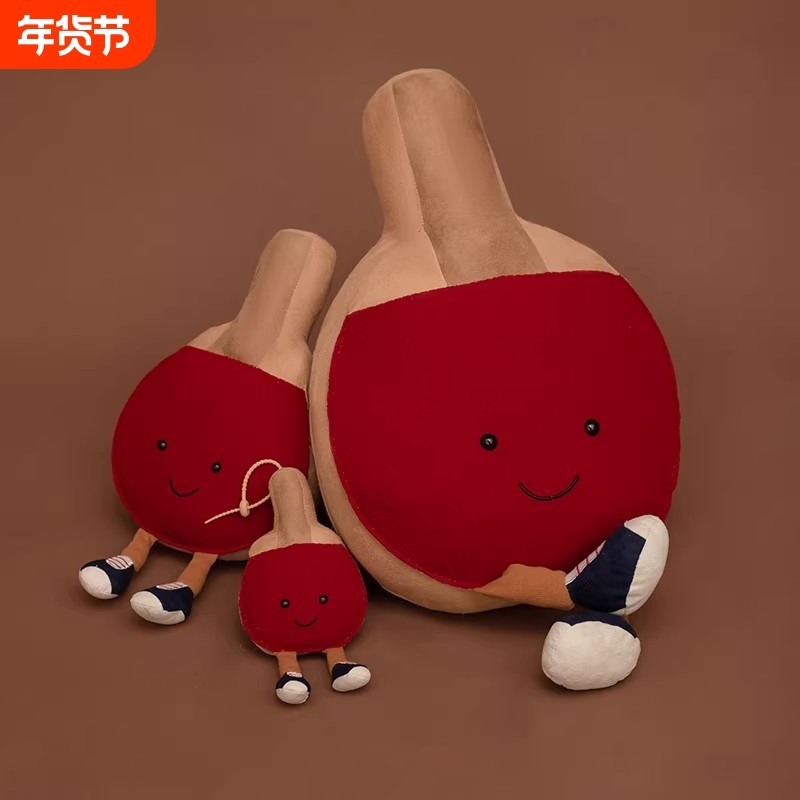 新款趣味运动坐姿乒乓球拍毛绒玩具沙发抱枕创意摆件儿童礼物玩偶