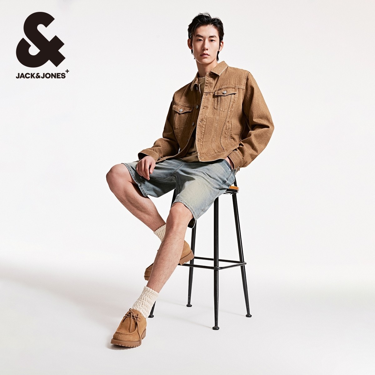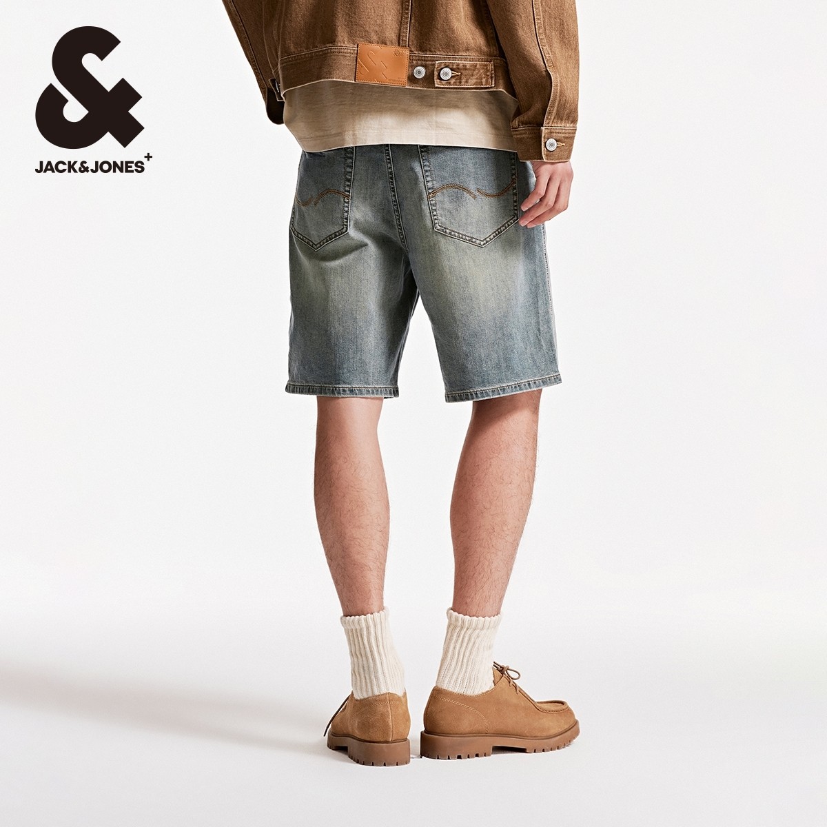 杰克琼斯夏季新款潮酷休闲男宽松水洗猫须多口袋牛仔短裤子男装