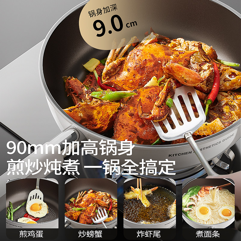 北鼎26cm不粘锅平底锅煎锅家用煎饼牛排锅油炸锅炒菜锅电磁炉专用