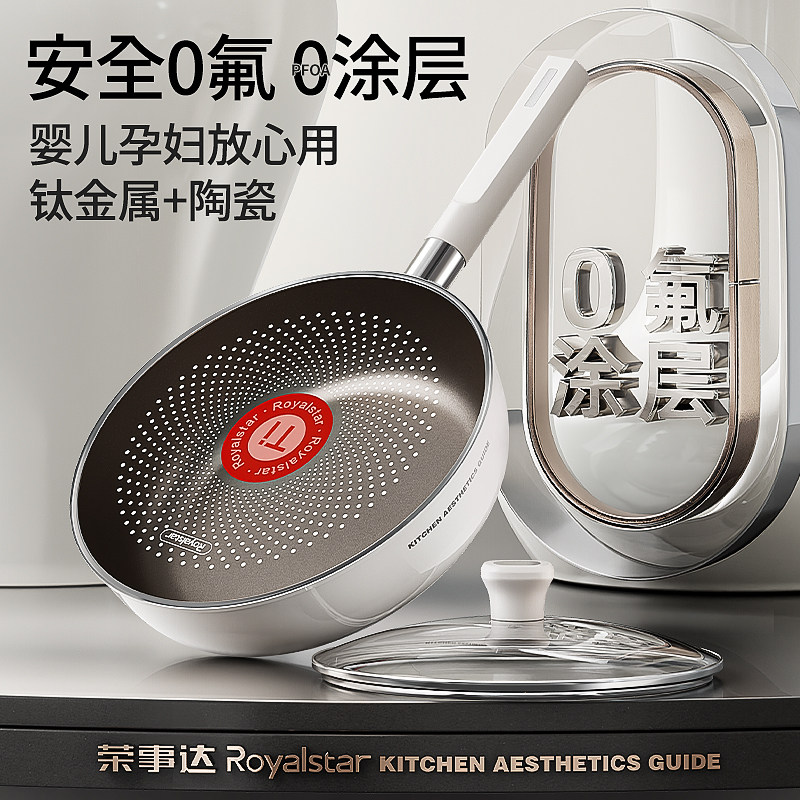 荣事达钛陶瓷无涂层不粘锅平底锅家用牛排电磁炉煤气灶专用深煎锅
