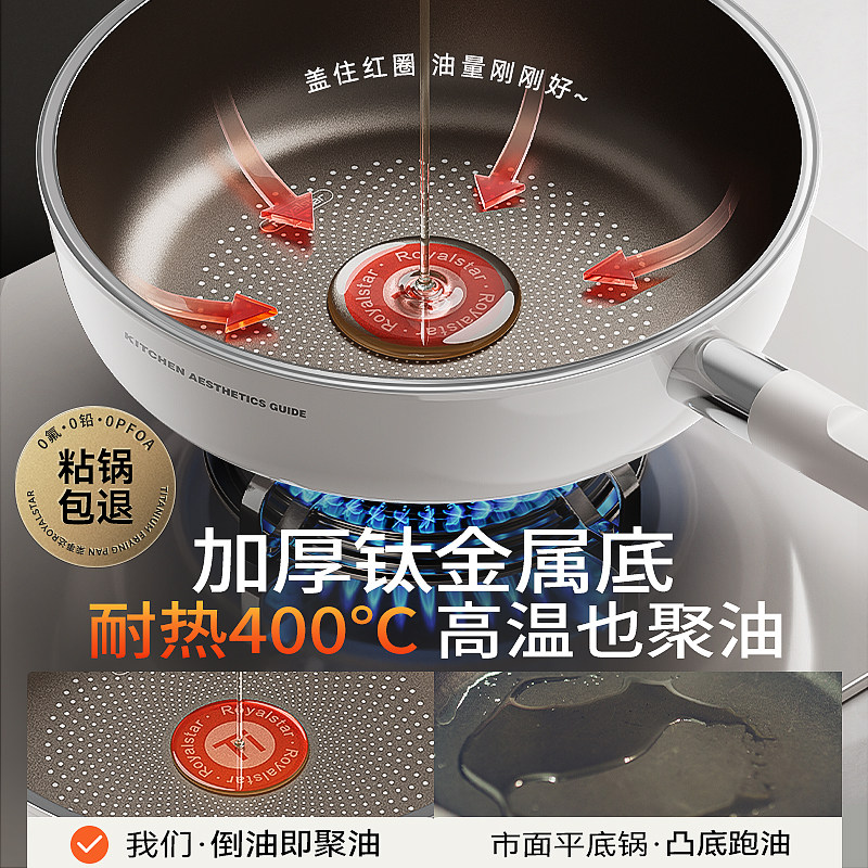 钛陶瓷无涂层不粘锅平底锅家用电磁炉煤气灶
