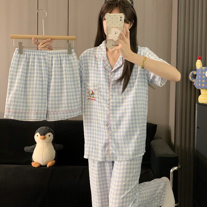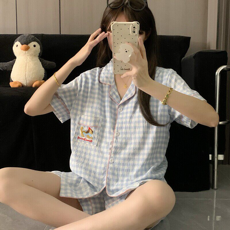 红豆带胸垫大码睡衣女春夏季短袖云朵纯棉卡通奶腊肠狗可爱三短裤