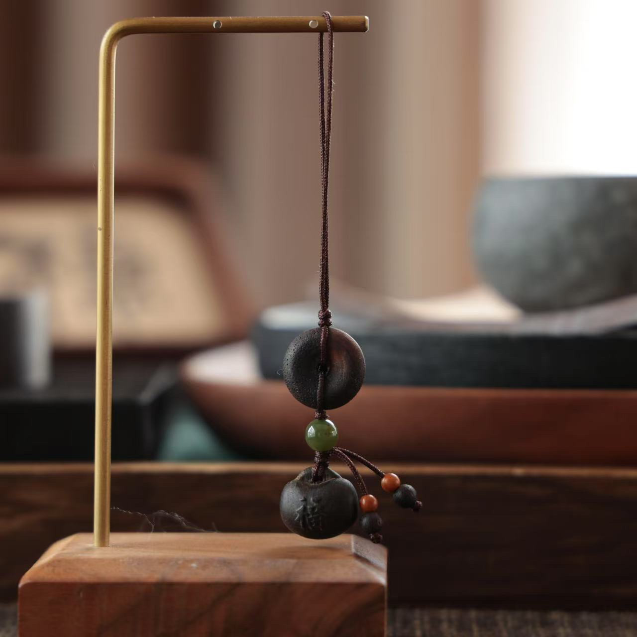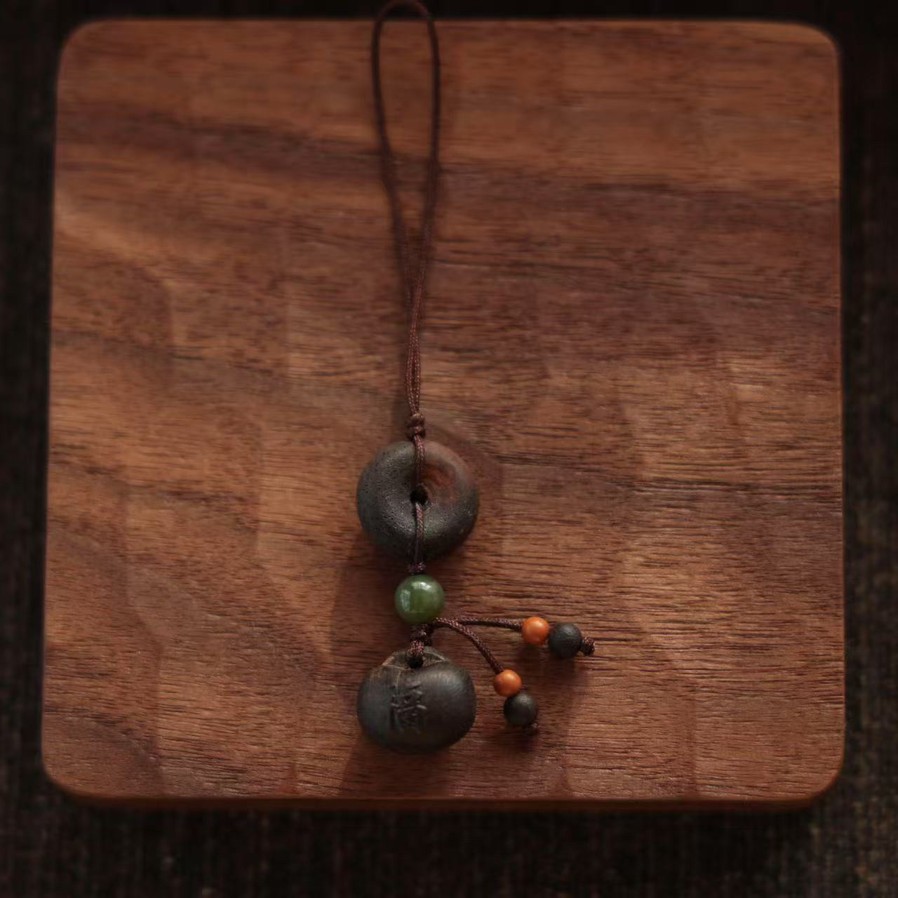 天然降真香平安扣手机挂搭配沉香福锁和田玉手机链挂件挂饰