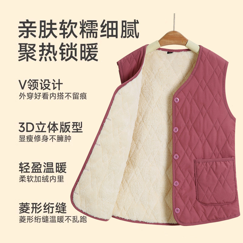 中老年马甲女秋冬款加绒加厚保暖马夹妈妈冬装坎肩上衣老太太衣服