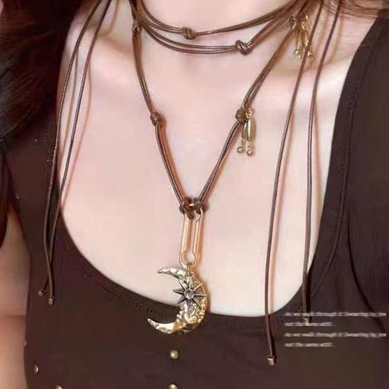 废土风月牙芒星项链女秋冬毛衣链大气高档高级感中古饰品百搭配饰