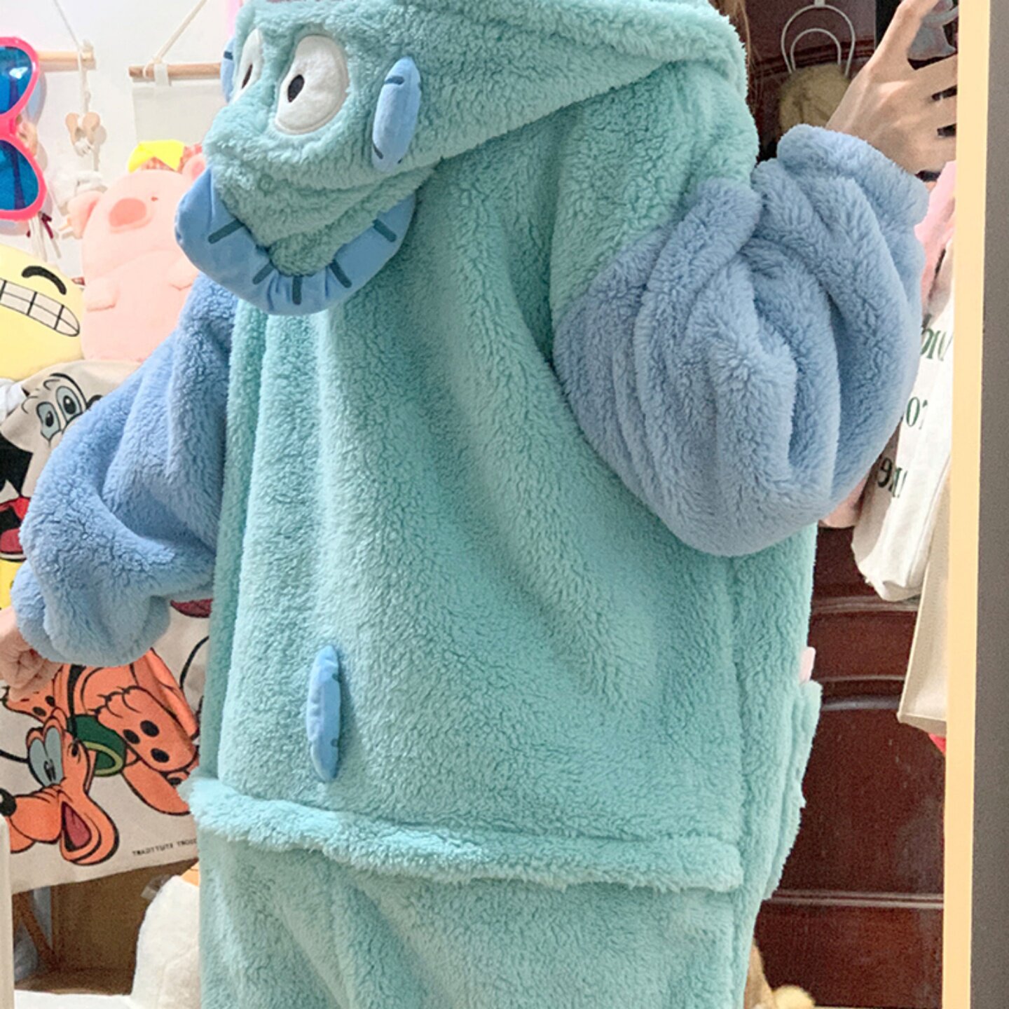 肖战同款猫人暖绒绒家居服半边绒男女2025新款冬季睡衣可外穿加厚