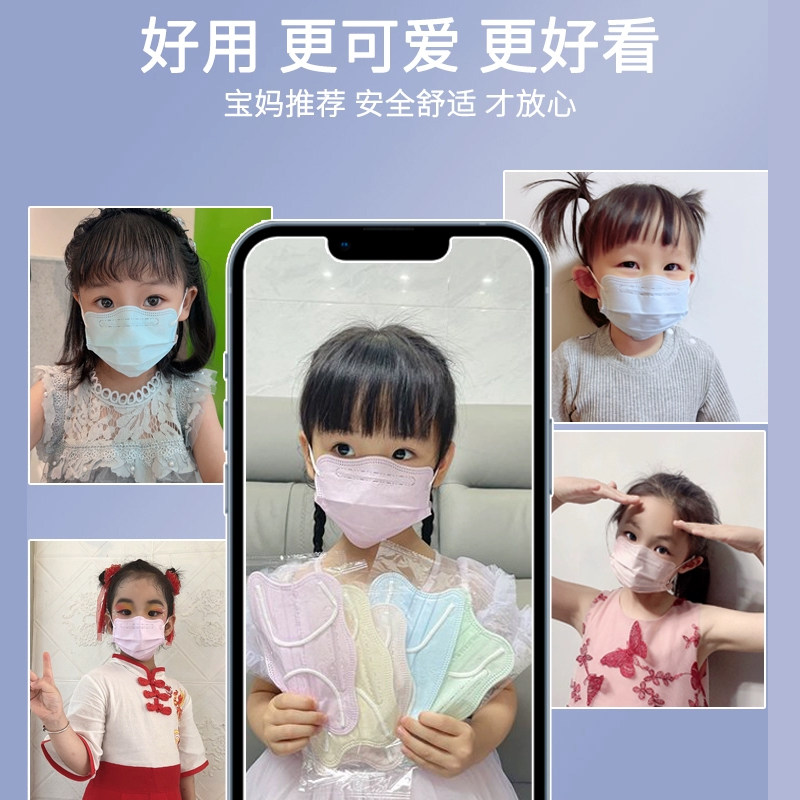 儿童型口罩一次性医疗5到12岁男孩女孩学生专用独立包装蝶形冬季