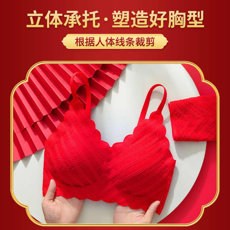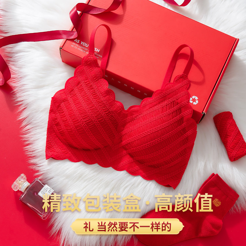 本命年红色内衣女2026马年小胸聚拢性感无钢圈结婚新娘文胸罩套装